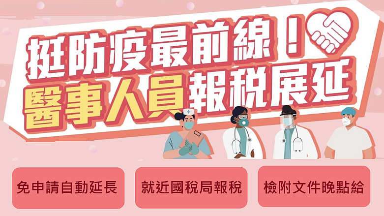 因應 疫情 ,為讓醫事人員安心防疫, 財政部 昨(28)日公告放寬醫事人員申報及繳納綜合所得稅期間,可展延一個月至今年8月2日,無須另外.