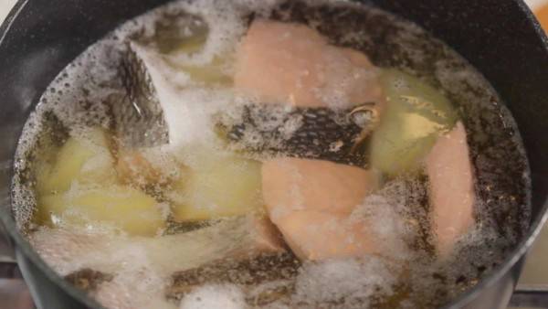 Gunakan api kecil dan masak nasi hingga setengah matang.